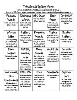 Read Online spelling menu for third grade Doc